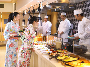 和洋中ずらりと並ぶ豪華バイキングに、ライブキッチンの出来立て料理